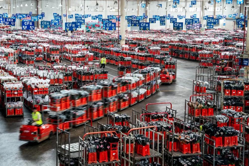 臺(tái)車在昆明國際花卉拍賣交易中心內(nèi)轉(zhuǎn)運(yùn)鮮花(7月9日攝)。新華社記者 胡超 攝