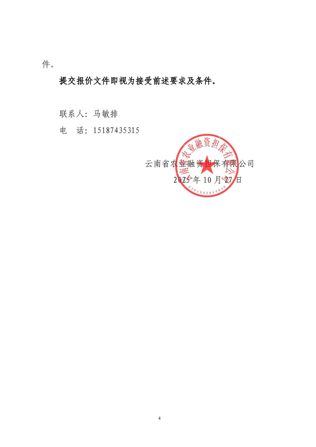 云南省農(nóng)業(yè)融資擔保有限公司詢價公告